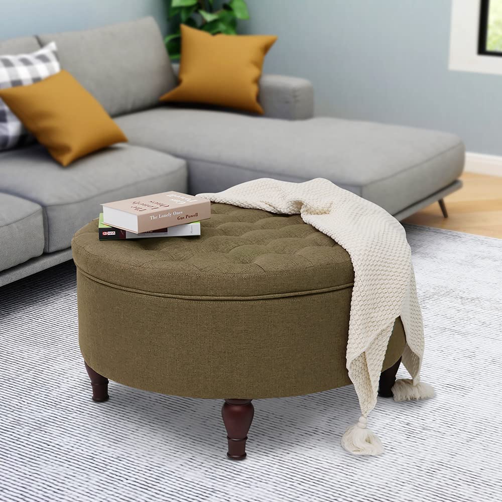 Amazon Com Maypex 32 Ottoman Indoor Tufted Round Storage Ottoman Coffee Table Seat Smooth With Lift Off Lid Storage Bench For Living Room Bedroom Office Tan Home Kitchen